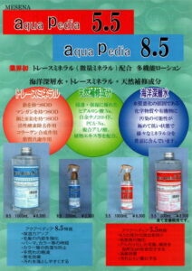 メセナ製品のベースとなっているのは、**天然微量ミネラル水「アクアペディア」**です。